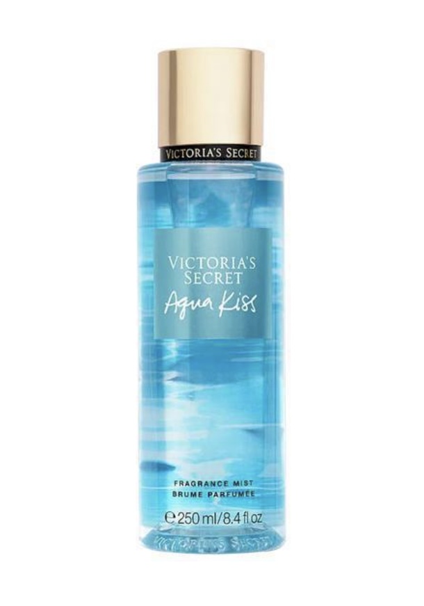 Body Splash Aqua Kiss de Victoria’s Secret , possui notas oceânicas, Frésia, margaridas, camomila, flor de ameixa, aloe vera e notas doces.